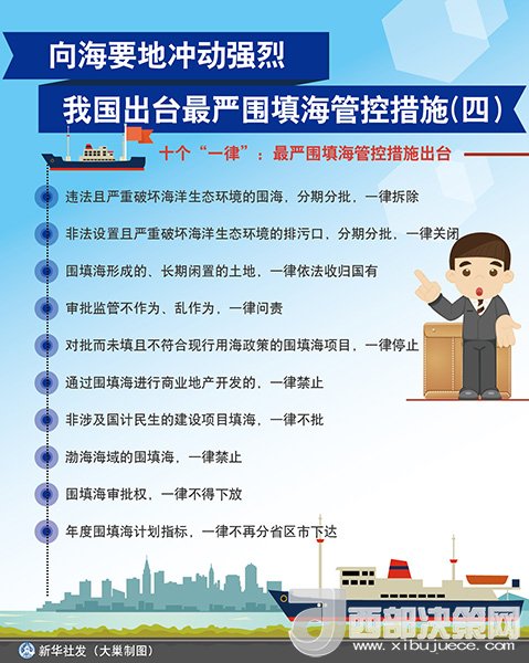 林山青表示,結合圍填海督察整改工作,國家海洋局將聚焦十個“一律”、三個“強化”,采取“史上最嚴圍填海管控措施”。
