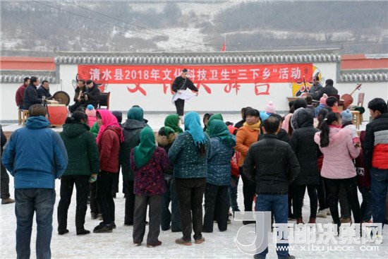 西部決策網(wǎng)-西部大開發(fā)訊(帥華鋒 通訊員 馬存福 楊兆康)大雪紛飛雪飄揚,過了臘八就是年。1月24日,由清水縣委宣傳部、文明辦、文廣局、縣委黨校、文化館、農業(yè)局、縣醫(yī)院、中醫(yī)院、婦保站、文聯(lián)等單位組織開展的2018年文化科技衛(wèi)生“三下鄉(xiāng)”活動走進秦亭鎮(zhèn)全莊村。