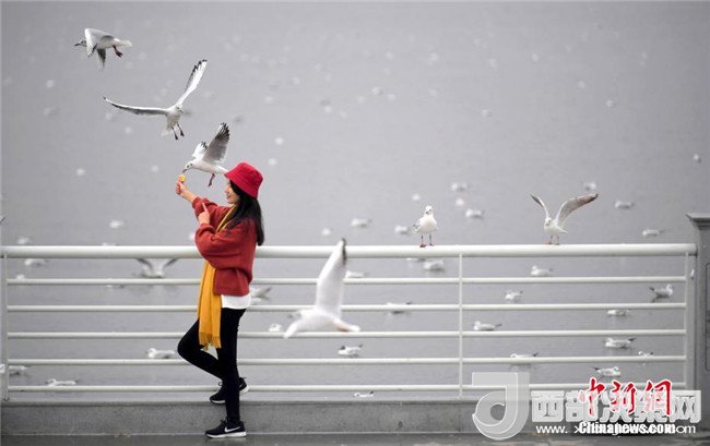 “春城”昆明強降溫紅嘴鷗與游人互動