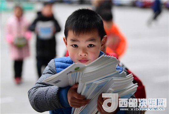 2月25日,江蘇省無錫市揚名中心小學(xué)的學(xué)生們手捧剛剛領(lǐng)取的新課本。(湯毅 攝)