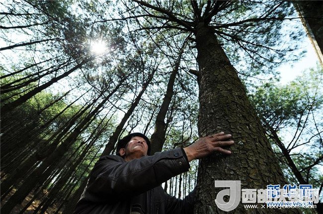 3月10日,沙子坡林場的老護(hù)林員王明才在看他33年前親手種下的華山松。