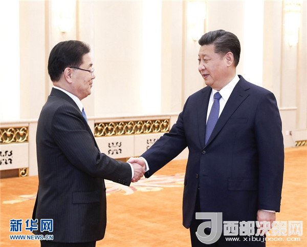 3月12日,國(guó)家主席習(xí)近平在北京人民大會(huì)堂會(huì)見韓國(guó)總統(tǒng)特使、國(guó)家安保室長(zhǎng)鄭義溶。 新華社記者 龐興雷 攝