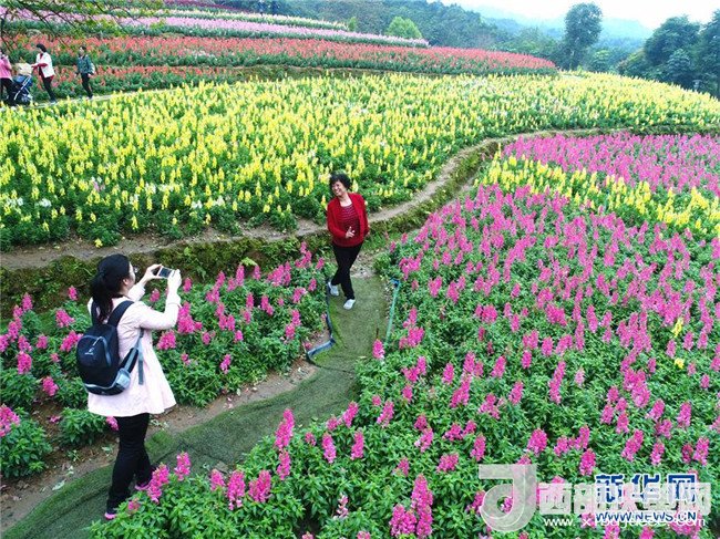 3月13日,市民在南寧市青秀山花叢中留影。