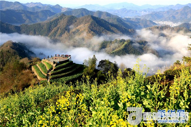 當日,陽光燦爛,氣溫回升,安徽省黃山市歙縣境內的石潭村、山水畫廓新安江、大洲源等地種植的油菜花陸續(xù)盛開,吸引著全國各地的游客到此觀光旅游。新華網發(fā)(潘成 攝)