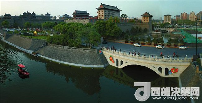 西安古城墻護(hù)城河。