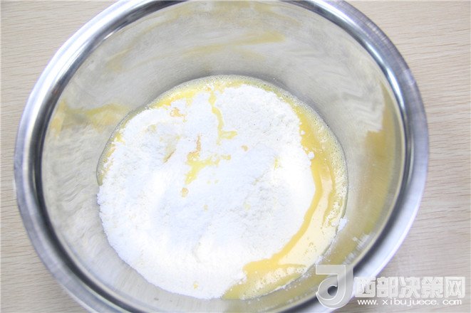 6.油皮材料全部混合放入盆里,攪拌均勻。