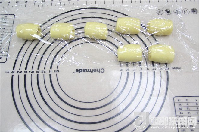 17.全部卷完后,用保鮮膜包起來(lái),靜置5分鐘。