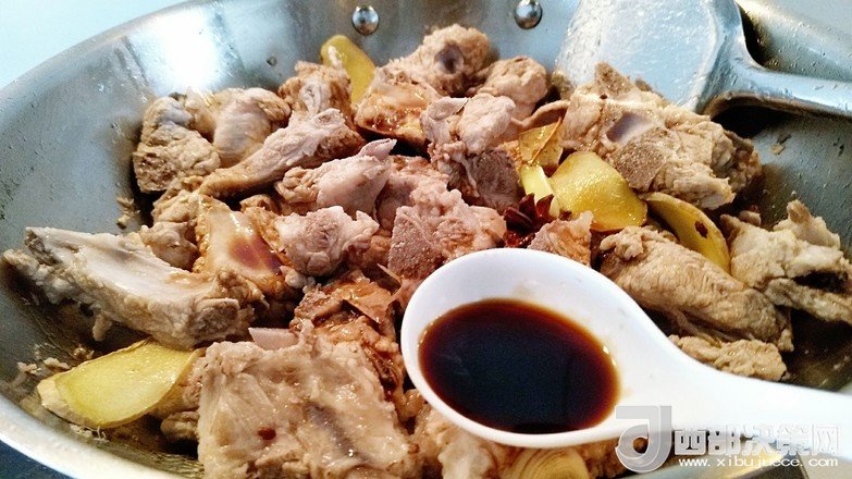 7.倒入排骨小火炒去掉水分。