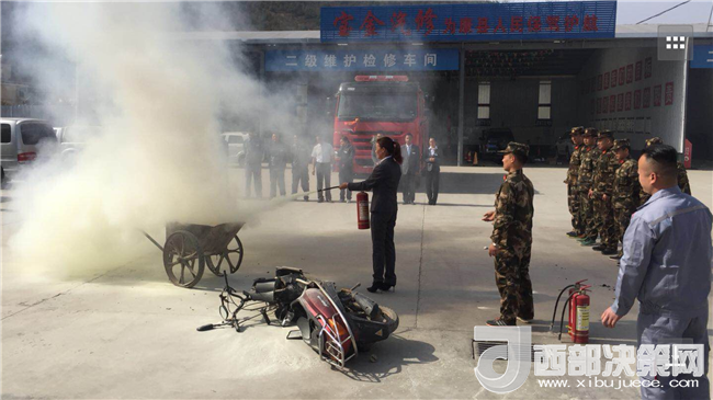 火災(zāi)設(shè)定,3月26日下午康縣大隊(duì)接到指揮中心調(diào)度稱寶金汽車專賣及修理廠發(fā)生火災(zāi),大隊(duì)立即出動(dòng)2車10人趕赴現(xiàn)場(chǎng)進(jìn)行救援,大隊(duì)官兵到達(dá)現(xiàn)場(chǎng)后按演練預(yù)案展開(kāi),圓滿完成演練任務(wù)。演練結(jié)束后,大隊(duì)準(zhǔn)備了滅火器撲滅油盆火、消防裝備講解等體驗(yàn)互動(dòng)活動(dòng),并不時(shí)與員工“互動(dòng)",現(xiàn)場(chǎng)提問(wèn),有效地帶動(dòng)員工學(xué)習(xí)消防知識(shí)的積極性和參與性。