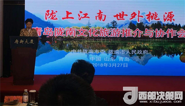 3月27日,在青島市府新大廈舉辦了青島隴南文化旅游推介與協(xié)作會(huì),隴南市人大常委會(huì)主任、市委秘書長(zhǎng)岳金林、隴南市政協(xié)主席張昉、隴南市委常委、常務(wù)副市長(zhǎng)張慶宏、隴南市委常委、宣傳部部長(zhǎng)李興華、隴南市副市長(zhǎng)徐世林、隴南市政府黨組成員、市委副秘書長(zhǎng)、市政府副秘書長(zhǎng)殷世逸、隴南市政府黨組成員、市政府副秘書長(zhǎng)苑曉輝、隴南市委宣傳部副部長(zhǎng)、精神文明辦主任周立鈞、隴南市文廣新局局長(zhǎng)汪小娟、隴南市旅游局局長(zhǎng)毛樹林及市旅游開發(fā)領(lǐng)導(dǎo)小組考察團(tuán)參加人員,各縣(區(qū))旅游局負(fù)責(zé)人,重點(diǎn)旅游景區(qū)、重點(diǎn)旅行社負(fù)責(zé)人參加會(huì)議。會(huì)議由隴南市副市長(zhǎng)徐世林主持。