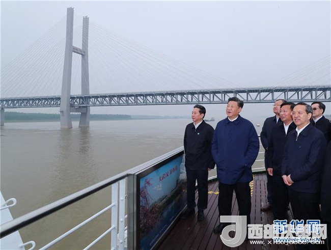 為了開好這次座談會,4月24日至25日,習近平先后在湖北省委書記蔣超良、省長王曉東,湖南省委書記杜家毫、省長許達哲陪同下,深入湖北宜昌市和荊州市、湖南岳陽市以及三峽壩區(qū)等地,考察化工企業(yè)搬遷、非法碼頭整治、江水污染治理、河勢控制和護岸工程、航道治理、濕地修復、水文站水文監(jiān)測工作等情況,實地了解長江經濟帶發(fā)展戰(zhàn)略實施情況。