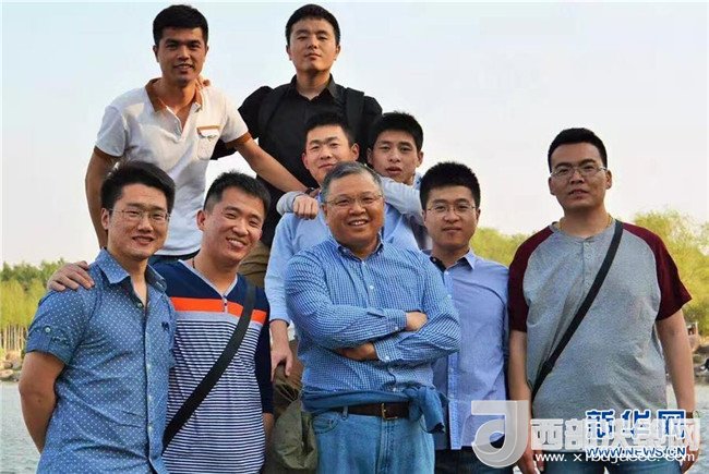 黃大年(前排中)與學(xué)生外出徒步時合影(資料照片)。