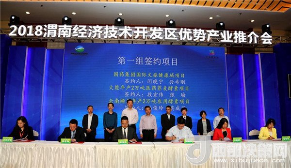 省質(zhì)監(jiān)局質(zhì)量監(jiān)督處處長張泉生,市食藥局黨組書記、局長王建軍,市商務(wù)局副局長李爭良、市工信局副局長孟宗憲,市外經(jīng)局副局長郭向陽、市質(zhì)監(jiān)局總工程師井西娥等省市領(lǐng)導(dǎo)出席推介會并見簽。經(jīng)開區(qū)黨群工作部部長閆曉宇,管委會副主任段宏偉、馬俊玲上臺簽約。此次簽約的項目包括有總投資30億元的國藥健康文旅城項目,總投資1億元的大能年產(chǎn)2萬噸醫(yī)藥蕎麥酵素項目,總投資3億元的陜西順天年2萬噸農(nóng)用酵素項目;總投資1.2億元的年產(chǎn)1萬噸功能性酵素和酵素飲品項目、總投資8000萬元的陜西宜康神年產(chǎn)5000噸蘆薈酵素項目和總投資6000萬元的陜西弘康生物科技股份有限公司特色植物提取項目;總投資8000萬元的綠盛農(nóng)業(yè)科技有限責(zé)任公司農(nóng)用酵素運營示范中心項目、總投資5400萬元的信德緣復(fù)合果蔬酵素項目和總投資6000萬元的渭南市藥材公司年產(chǎn)1000噸葡萄酵素項目。