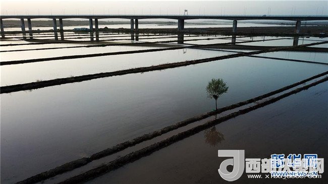 近日,寧夏黃河灌區(qū)百萬畝水稻種植區(qū)進(jìn)入插秧季節(jié),黃河岸邊,塊塊稻田水滿欲溢,在初夏夕陽的映照下猶如明鏡,一派生機(jī)盎然的景象。