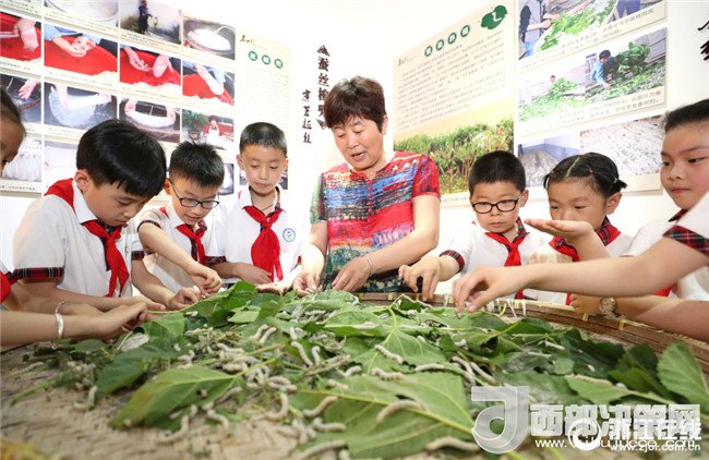 5月15日,德清縣新市鎮(zhèn)完全小學(xué)的10多名學(xué)生來(lái)到勇興村蠶桑文化館,了解養(yǎng)蠶制絲的古老手藝,感受中國(guó)絲之源和蠶桑文化的獨(dú)特魅力。(浙江在線拍友 王正 攝)