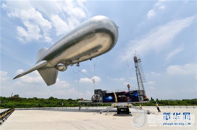 在光啟東莞生態(tài)園的研發(fā)基地,集廣域互聯(lián)網(wǎng)信息傳輸和光學(xué)監(jiān)控于一體的“云端號”準(zhǔn)備升空(2016年7月7日攝)。新華社記者毛思倩攝