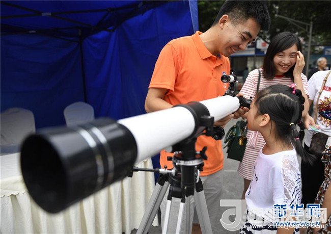 5月20日,一名小朋友在中科院成都分院活動現(xiàn)場體驗(yàn)望遠(yuǎn)鏡。
