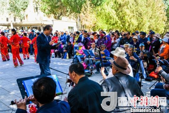 圖為敦煌市沙州樂(lè)園民族歌舞團(tuán)在莫高窟前表演敦煌民間戲曲。 王斌銀 攝