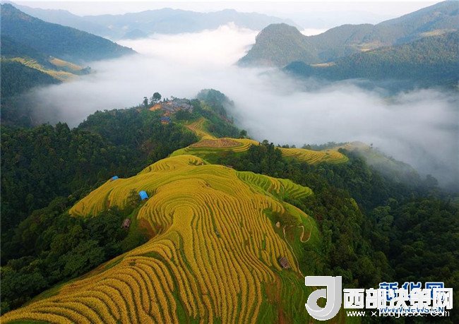 黔東南苗族侗族自治州榕江縣郊外的梯田風(fēng)光(2017年9月18日無(wú)人機(jī)拍攝)。