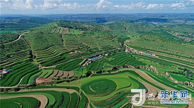 寧夏固原市彭陽縣金雞坪梯田公園(7月16日攝)。 新華社記者 王鵬 攝