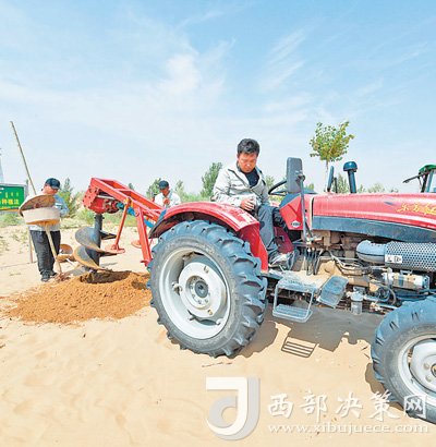 在庫布其用虹吸種植法植樹。本報記者 吳 勇攝