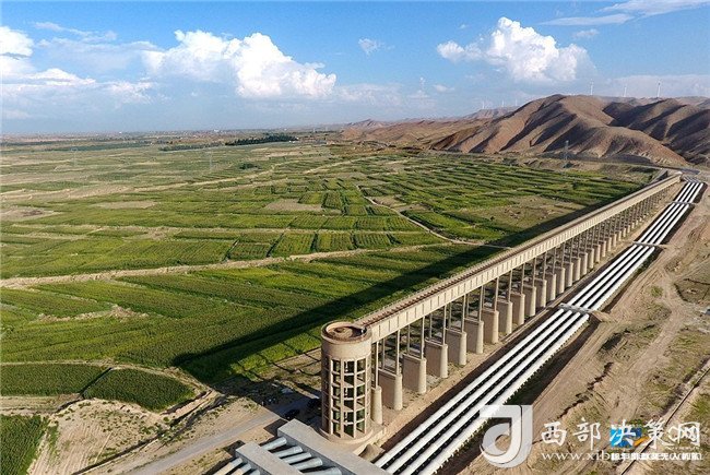 寧夏紅寺堡揚水工程三泵站出水渡槽。新華網 張潔龍 攝