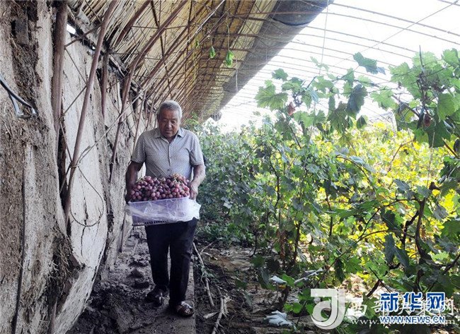 8月22日,在中衛(wèi)市沙坡頭區(qū)一家生態(tài)養(yǎng)殖基地,工作人員在采摘葡萄。該養(yǎng)殖基地經(jīng)改造沙漠建成,占地500余畝,目前已發(fā)展葡萄種植、肉牛、奶牛養(yǎng)殖等產(chǎn)業(yè)。新華社記者肖瀟攝