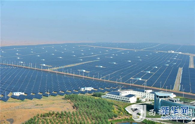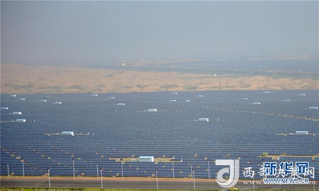 8月22日拍攝的中衛(wèi)市沙漠光伏產(chǎn)業(yè)園。新華社記者劉軍喜攝