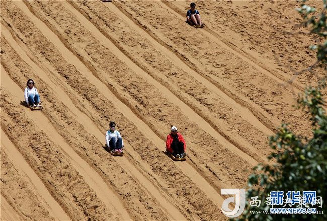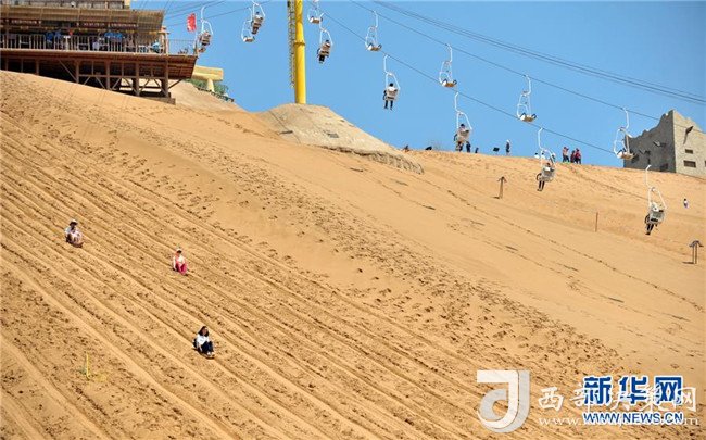 8月22日,游客在中衛(wèi)市沙坡頭旅游景區(qū)體驗(yàn)滑沙。沙坡頭旅游景區(qū)因地制宜發(fā)展沙漠旅游,旺季日接待游客量達(dá)兩萬人次。新華社記者伍婧丹攝