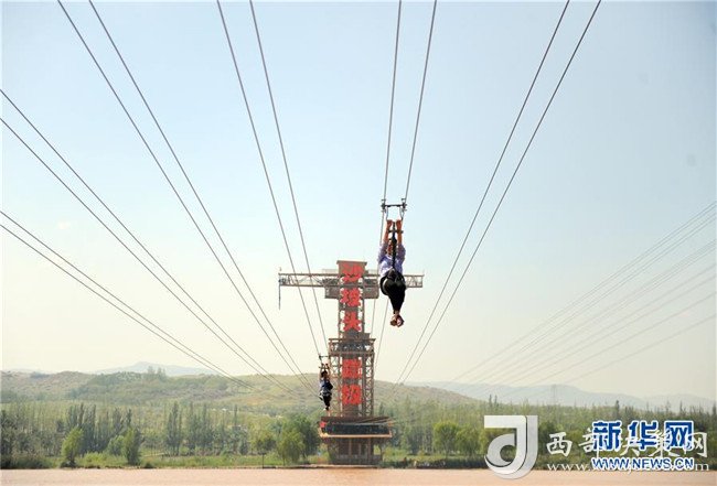 8月22日,游客在中衛(wèi)市沙坡頭旅游景區(qū)體驗(yàn)溜索。沙坡頭旅游景區(qū)因地制宜發(fā)展沙漠旅游,旺季日接待游客量達(dá)兩萬人次。新華社記者任鵬飛攝