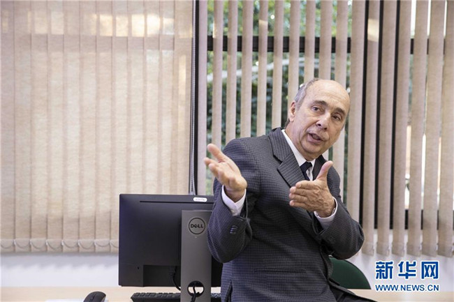 8月30日,在巴西圣若澤杜斯坎普斯,中國(guó)-巴西空間天氣聯(lián)合實(shí)驗(yàn)室巴方運(yùn)營(yíng)負(fù)責(zé)人若阿金·科斯塔在介紹實(shí)驗(yàn)室運(yùn)轉(zhuǎn)情況。 新華社記者 李明 攝