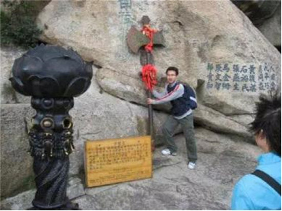 登南峰絕頂,頓感天近咫尺,星斗可摘,舉目環(huán)視,但見(jiàn)群山起伏,蒼蒼莽莽,為華山之最高峰,憑欄而望,白霧茫茫,不知深淺,風(fēng)起云海翻騰,漸露山頂,好是奇美!