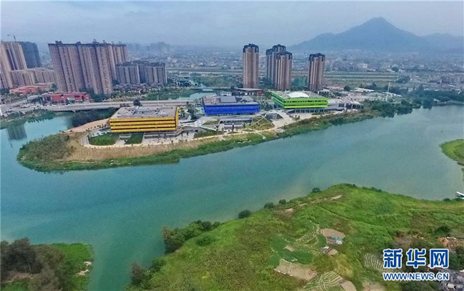這是利用木蘭溪流域舊河道開挖成的人工湖——玉湖。當(dāng)?shù)卦诖私Y(jié)合周邊公共綠地,建設(shè)公共建筑,實現(xiàn)了現(xiàn)代建筑與自然景觀渾然一體(8月6日無人機拍攝)。新華社記者 林善傳 攝