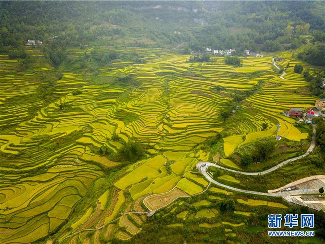 花田鄉(xiāng)千畝梯田(9月19日無人機(jī)拍攝)。記者劉潺攝