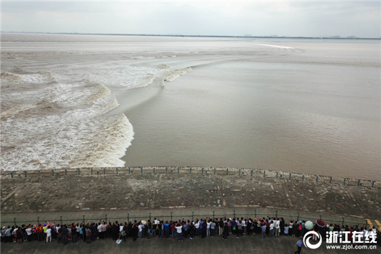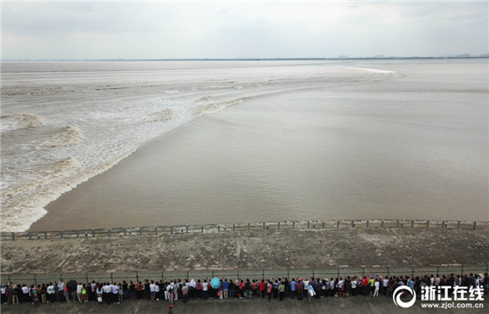 9月26日,農(nóng)歷八月十七,海寧大缺口觀潮點(diǎn),千名游客在江堤上安全觀潮。據(jù)海寧鹽官水文站預(yù)測,從當(dāng)天開始,錢塘江進(jìn)入最佳觀潮期,預(yù)計(jì)八月十八大潮日,潮高會在1.5米左右。(浙江在線記者 董旭明 攝)