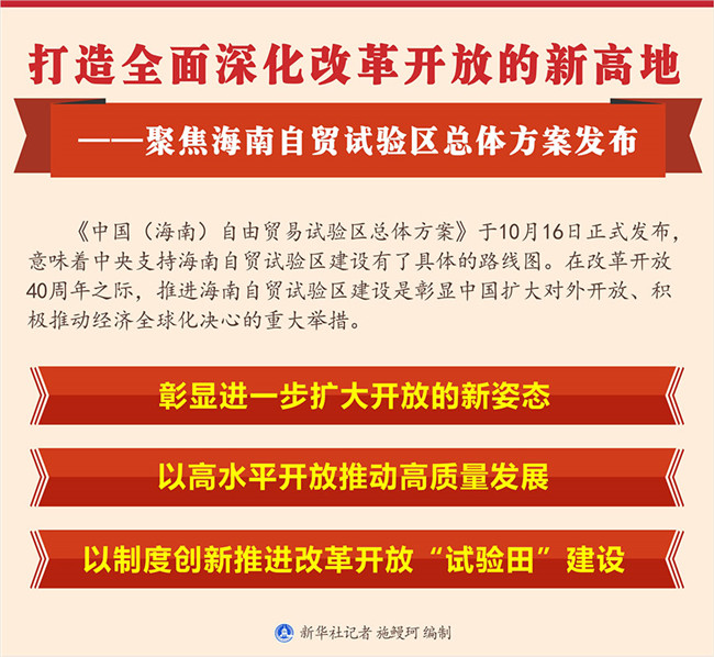 原標題:打造全面深化改革開放的新高地——聚焦海南自貿試驗區(qū)總體方案發(fā)布