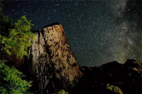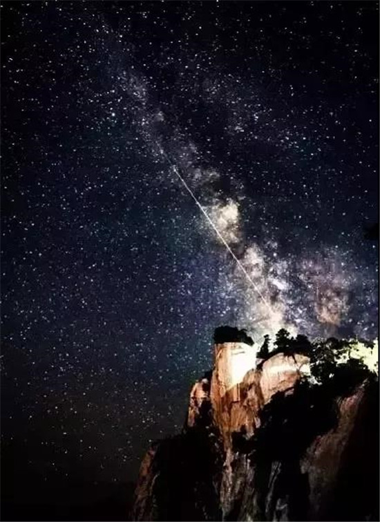 繁眼的星光,滿山的燈光,將華山映襯得一派柔和,這里的夜屏蔽了城市的喧囂與繁華,有著不屬于城市的寧靜與美麗。