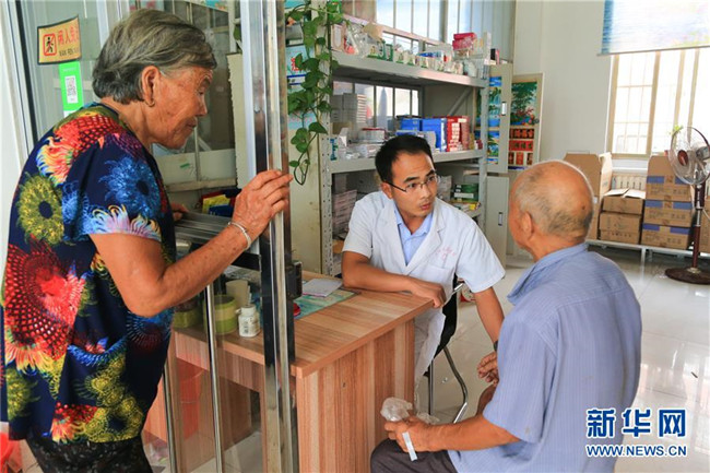 在山東費縣朱田鎮(zhèn)崔家溝社區(qū),當?shù)卮迕裨谛l(wèi)生室就診(8月22日攝)。崔家溝村是遠近聞名的“光棍村”“貧困村中的貧困村”。2016年3月,崔家溝村在中央異地搬遷政策的扶持下,實現(xiàn)了整體搬遷,1600多口人搬到了鎮(zhèn)駐地。從此,昔日的“光棍村”,一躍進入朱田鎮(zhèn)富裕村行列。新華社記者 王南 攝