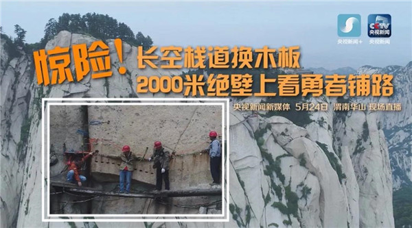 央視新聞頻道對“華山長空棧道更換木板”進行直播