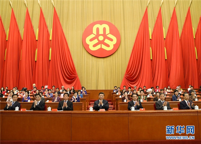 10月30日,中國(guó)婦女第十二次全國(guó)代表大會(huì)在北京人民大會(huì)堂開(kāi)幕。習(xí)近平、李克強(qiáng)、栗戰(zhàn)書(shū)、汪洋、王滬寧、趙樂(lè)際、韓正等在主席臺(tái)就座,祝賀大會(huì)召開(kāi)。 新華社記者 鞠鵬 攝