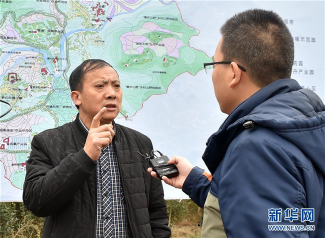 貴州安順平壩區(qū)塘約村村支書(shū)左文學(xué)(左)接受新華社記者采訪(fǎng)(2016年12月14日攝)。新華社記者李賀攝