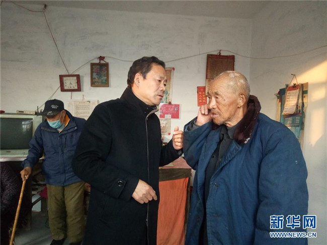 河北新河縣申家莊村村支書(shū)史鳳水(右二)在看望村民(2018年11月19日攝)。 新華社發(fā)