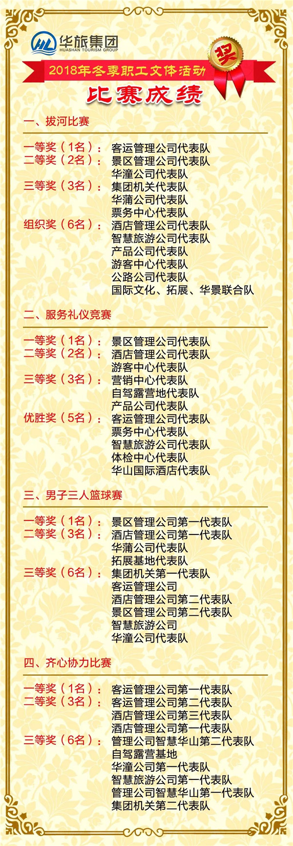 為進(jìn)一步提高職工素質(zhì),弘揚(yáng)企業(yè)文化。近日,華旅集團(tuán)舉辦了2018年冬季職工文體活動。此次活動包含拔河比賽、服務(wù)禮儀競賽、齊心協(xié)力、男子3VS3籃球賽等比賽項(xiàng)目,共有來自集團(tuán)各單位600余名職工參加。