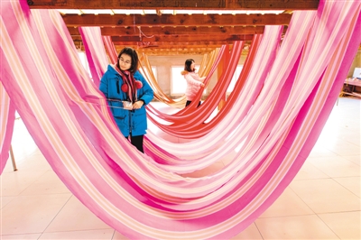 2018年以來,河北省衡水市冀州區(qū)依托當(dāng)?shù)氐氖〖?jí)非遺田園棉手織粗布技藝資源,采取“非遺+扶貧”的模式,通過非遺傳承人開展技能培訓(xùn)、老師傅傳幫帶等,讓村民在傳承非遺文化的同時(shí)學(xué)習(xí)傳統(tǒng)技藝,助力脫貧致富。圖為12月25日,衡水市冀州區(qū)一家老粗布生產(chǎn)企業(yè)的工人在檢測(cè)布料干濕度。