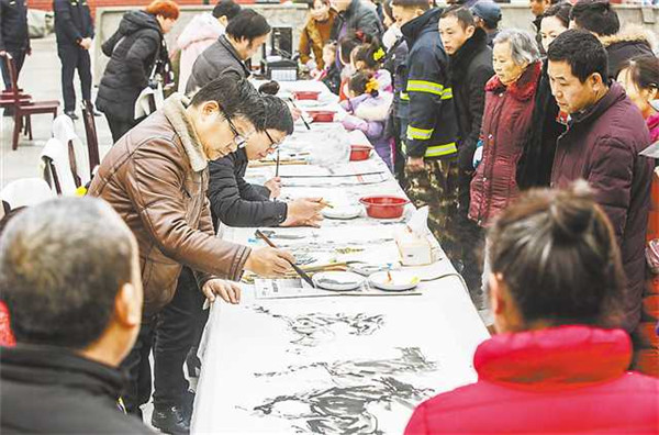 1月6日,“我們的中國夢”2019年重慶市文化進(jìn)萬家活動啟動儀式暨紅色文藝輕騎兵文藝志愿服務(wù)活動在合川區(qū)太和鎮(zhèn)舉行,圖為送書畫現(xiàn)場。張華 攝
