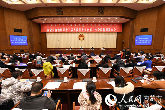 內(nèi)蒙古自治區(qū)十三屆人大二次會(huì)議新聞發(fā)布會(huì)現(xiàn)場(chǎng)。