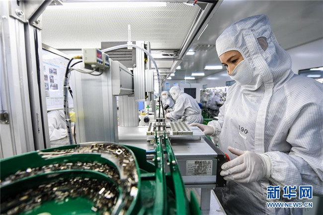 2月23日,在內(nèi)蒙古包頭市江馨微電機(jī)公司的生產(chǎn)線中,工作人員在展示微電機(jī)成品。新華社記者 彭源 攝