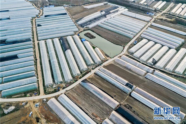 3月11日無人機拍攝的明光市管店鎮(zhèn)甜葉菊育苗扶貧基地一角。  新華社記者 曹力 攝