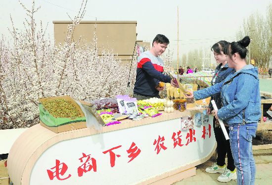 3月23日,新疆托克遜縣夏鄉(xiāng)南湖村電子商務服務點的工作人員在為游客介紹當?shù)氐奶厣r(nóng)產(chǎn)品。 近年來,托克遜縣通過構(gòu)建電子商務培訓體系、農(nóng)產(chǎn)品營銷體系等,幫助當?shù)剞r(nóng)民開設網(wǎng)店,尋找代銷產(chǎn)品、入駐網(wǎng)絡銷售平臺,引領(lǐng)農(nóng)民走上致富路。(秦梅花)