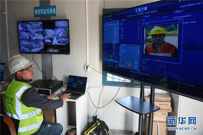 3月26日,工作人員在“浙江智慧之門”項目工地察看“工地大腦”的實時數(shù)據(jù)。據(jù)了解,“工地大腦”匯總了人員、設(shè)備、物料、進(jìn)度、環(huán)境等要素。新華社記者黃宗治攝